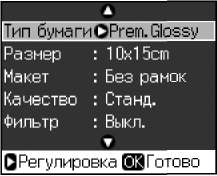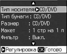 Plain Paper (Простая бумага), Matte, Prem. Glossy, Ultra Glossy, Photo Paper (Фотобумага), CD/DVD