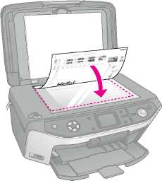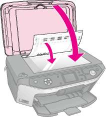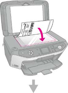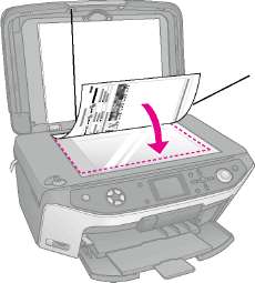 2. Положите лист комбинированной печати на планшет отпечатанной стороной вниз верхней стороной к левому краю планшета.