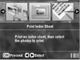 После установки карты памяти вы можете выбрать фотографии для печати на ЖК-дисплее или распечатав и отсканировав индексную страницу.