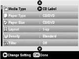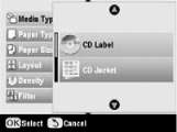 4. Кнопками l и r перейдите к пункту CD/DVD Print (Печать на CD/DVD) и нажмите на кнопку OK.