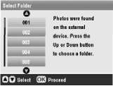 2. Когда появится такой экран, кнопками u и d выберите папку с фотографиями, которые вы хотите напечатать, и нажмите на кнопку OK.