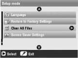2. Кнопками u и d выберите Clear All Files (Удаление всех файлов).