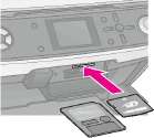 Не пытайтесь силой вставить карту памяти в слот. Карта вставляется в слот не полностью. Применяя черезмерные усилия, можно повредить и принтер, и карту памяти.