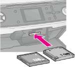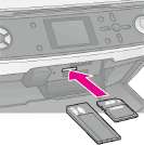 3. Убедитесь, что индикатор карты памяти, находящийся рядом со слотами для карт памяти, не горит и в слоты не вставлена другая карта памяти. Вставьте карту памяти.