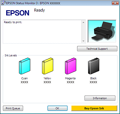 Если один из установленных сломан, несовместим с данной моделью устройства или установлен неправильно, EPSON Status Monitor 3 будет не в состоянии отобразить точное количество чернил. Обязательно замените или переустановите краску, на которую указывает EPSON Status Monitor 3.