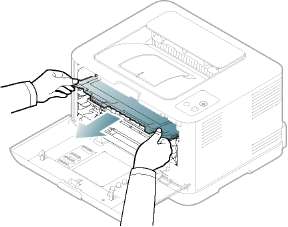 3. Вытащите контейнер для отработанного тонера из устройства за ручку.