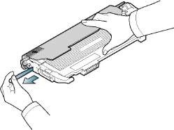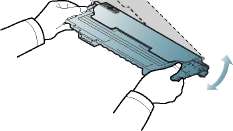 6. Возьмите его за обе ручки и поверните его несколько раз из стороны в сторону для равномерного распределения тонера.