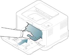 8. Вставьте контейнер сбора тонера до щелчка, затем нажмите на него, чтобы он плотно встал на место.