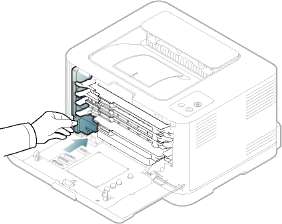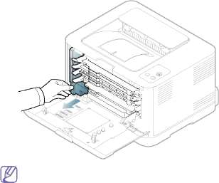 5. Вытяните блок переноса изображения из устройства за ручку, расположенную внизу блока.