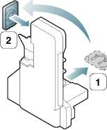 6. Установите новый контейнер и задвиньте его так, чтобы он плотно встал на место.