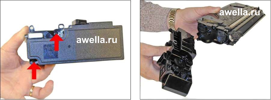 собираем далее, заправляем картридж тонером