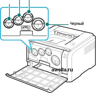 7 На блоке изображения принтера нанесена маркировка для каждого слота, которая показывает, какой следует устанавливать в данный слот: