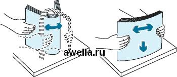 5 Согните пачку бумаги вперед и назад, чтобы разделить листы, а затем разверните их веером, удерживая за один край. Выровняйте край пачки, постучав по ровной поверхности.