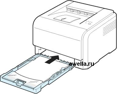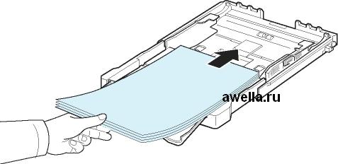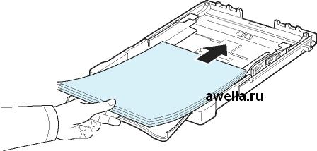 6 Загрузите бумагу в лоток стороной для печати вверх.