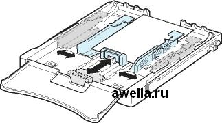 Для того чтобы использовать бумагу другого размера, необходимо соответствующим образом изменить положение ограничителей размера бумаги.