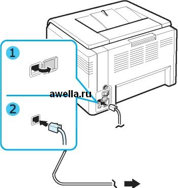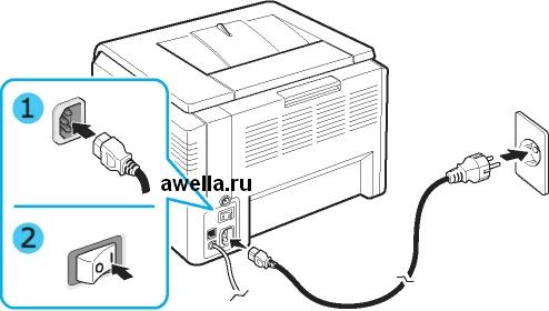 2 Подключите другой конец шнура питания в заземленную электрическую розетку и включите принтер.