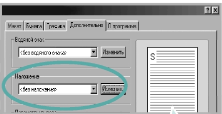 Выбранное наложение загружается в память принтера вместе с заданием печати и распечатывается вместе с документом.