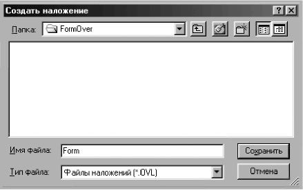 5 В окне «Создать наложение» введите имя длиной не более восьми символов в поле Имя файла. При необходимости укажите путь к файлу. (По умолчанию используется путь C:\FormOver.)