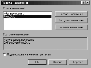 6 При необходимости установите флажок Подтверждать наложение при печати. Если флажок установлен, при выводе документа на печать будет появляться запрос на подтверждение использования наложения.