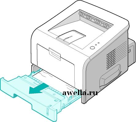 1 Выньте лоток, чтобы обеспечить доступ к зажатой бумаге.