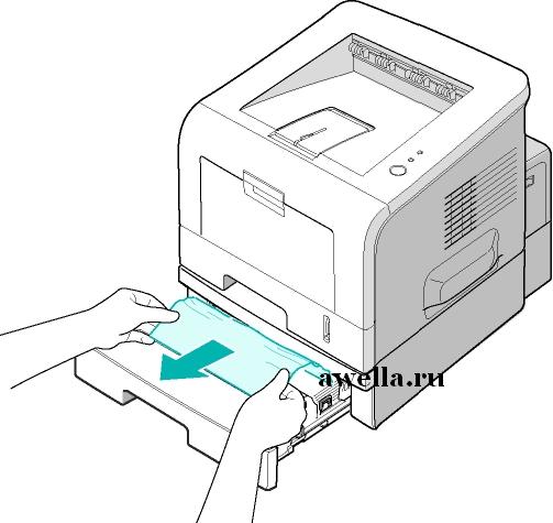 Если вы не можете определить место замятия или бумага удаляется с трудом, извлеките лоток из принтера и осторожно удалите мятую бумагу.