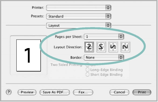 Для доступа к соответствующим параметрам выберите в раскрывающемся списке Layout пункт Presets. Для получения дополнительной информации см. раздел «Печать нескольких страниц на одной стороне листа бумаги» в соседней колонке.