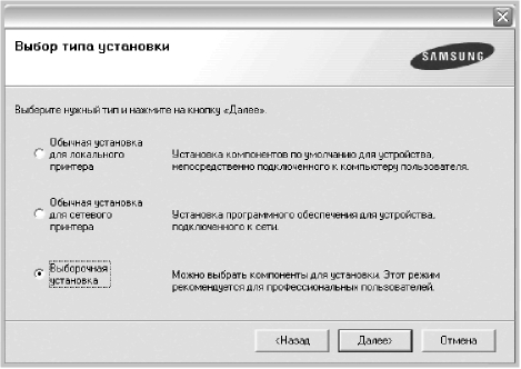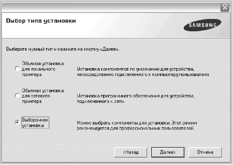 Для программного обеспечения печати можно выбрать обычную или выборочную установку.