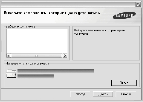 6 Выберите компоненты, которые следует установить, и нажмите кнопку Далее.
