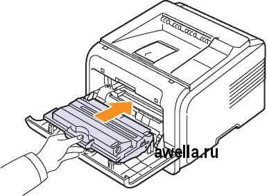 4 Возьмите за ручку и аккуратно вставьте его в принтер.