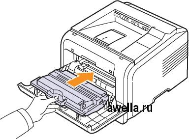 5 Возьмите за ручку и аккуратно вставьте его в принтер.
