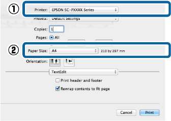 Убедитесь, что выбран нужный принтер, и затем задайте размер бумаги.