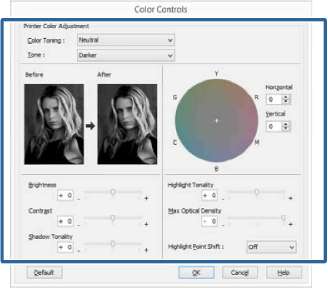 Вы можете осуществлять печать черно-белых фотографий с богатой градацией цветов, настраивая цвета изображения в драйвере принтера.