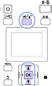 Используйте кнопки l/r на панели управления для выбора вкладки, затем нажмите кнопку ОN или Menu. Появится меню Настройка; выберите Настройка принтера > Настройка рулон. бум.> Автообрезание > Вкл и нажмите кнопку. Для обрезки вручную выберите Off (Выключить). Значением по умолчанию является Вкл.