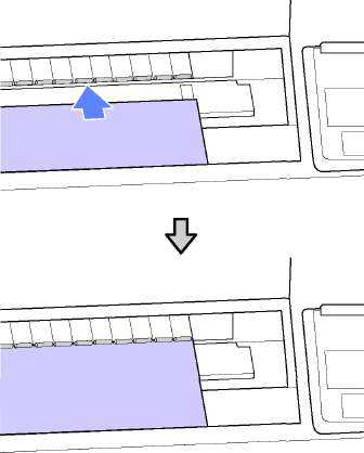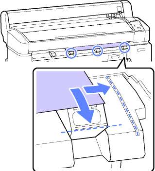 Выровняйте правый край над выемкой справа от направляющей выхода бумаги, затем выровняйте задний край относительно конца опоры плаката, как показано ниже.