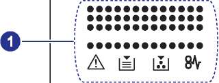 • индикатор замятия бумаги Мигает, если в устройстве произошло замятие бумаги. Прочтите сообщение на дисплее и извлеките замятую бумагу.