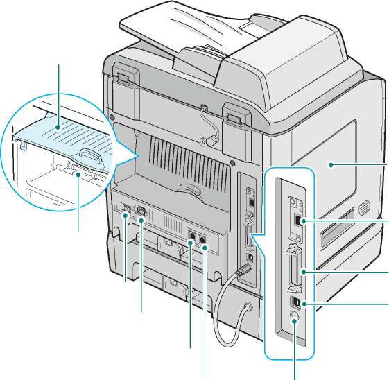 • Устройство поддерживает как USB-интерфейс, так и параллельный интерфейс. В некоторых странах устройство может не иметь порта параллельного интерфейса.
