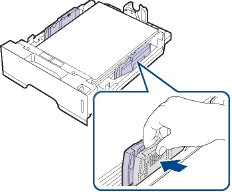 2. Поместив бумагу в лоток, сдвиньте подставку ограничителя длины, чтобы она слегка касалась края пачки бумаги.