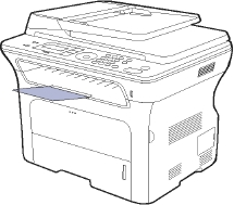 Подставка позволяет выровнять отпечатанные листы в выходном лотке. Для правильного выравнивания листов вытяните подставку на длину, соответствующую размеру бумаги.