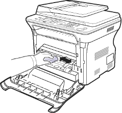 Если передняя крышка будет открытой в течение нескольких минут, барабан регулировки изображения подвергнется воздействию света, что может вызвать его повреждение.