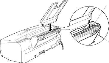 Вставьте подставку для бумаги в верхний паз сзади принтера, как показано на рисунке ниже.