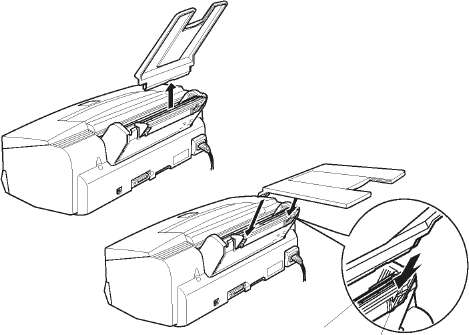 Перед загрузкой прозрачных пленок снимите подставку для бумаги и вставьте ее в паз сзади принтера, как показано ниже на рисунке.