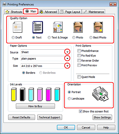 Выберите ориентацию отпечатка: Portrait (Книжная) или Landscape (Альбомная).