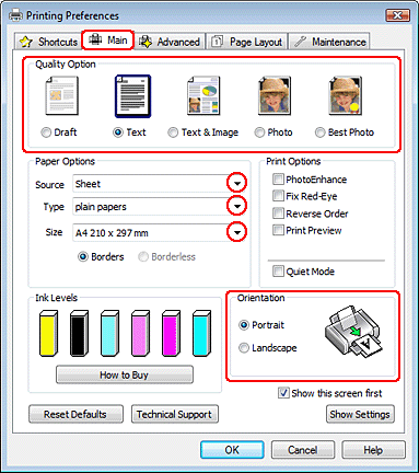 Откройте вкладку Main (Главное) и выберите один из рекомендуемых ниже параметров Quality Options (Качество).