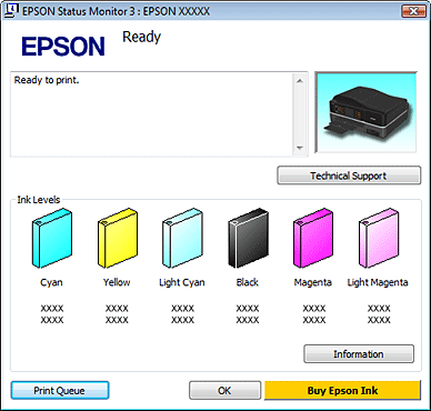 В окне EPSON Status Monitor 3 можно открыть интерактивное Руководство пользователя. Если произошла ошибка, щелкните Technical Support (Техническая поддержка) в окне EPSON Status Monitor 3.