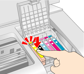 Если печатающая головка находится крайнем правом, нажмите на кнопку чернил, чтобы переместить ее в положение замены.
