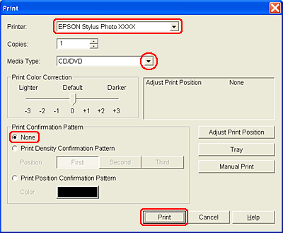 Для параметра Media Type (Тип носителя) выберите CD/DVD или CD/DVD Premium Surface (Улучшенная поверхность CD/DVD).