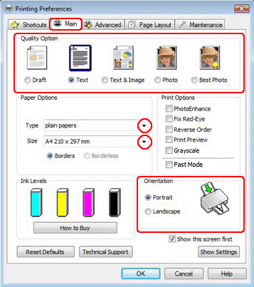Откройте вкладку Main (Главное) и выберите один из рекомендуемых ниже параметров Quality Option.