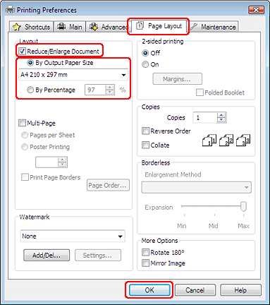 Перейдите на вкладку Page Layout (Макет) и установите флажок Reduce/Enlarge Document (Уменьшить/Увеличить).