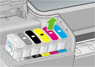2. Откройте крышку отсека в левой части принтера. Все шесть, черный, голубой, пурпурный, желтый, серый, матово-черый расположены с левой стороны.