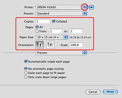 Выберите используемый принтер для параметра Printer (Принтер). Затем выберите значение параметра Copies & Pages (Копии и страницы).